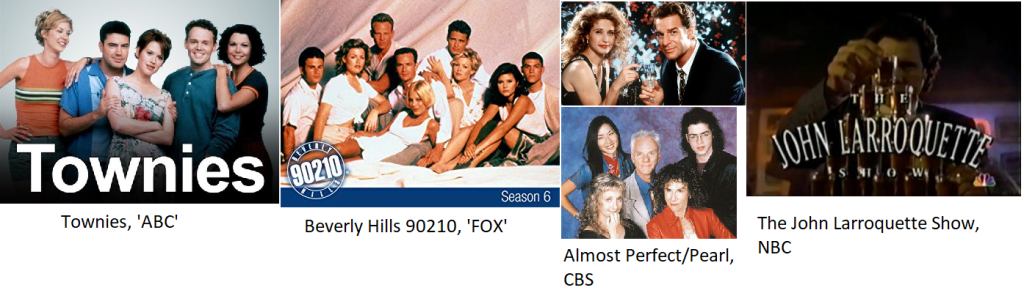 Unfortunately, the show did not catch on. After initially airing in September 1996, 15 episodes had been produced before the show was officially cancelled by NBC in December with only 10 episodes having aired. In its timeslot, the show had to compete for ratings with Fox’s Beverly Hills 90210 (#53 in the ratings), short-lived sitcoms Almost Perfect and Pearl on CBS and The John Larroquette Show on NBC, all of whom were struggling or falling in the ratings. One of the reasons that could be attributing to the show’s abrupt showing was its positioning in ABC’s schedule. An LA Times article from the time stated that Townies “flunked the values check” for its timeslot, with its breezy approach to casual sex placing it squarely in the cross hairs of those blasting mainstream TV’s thoughtless programming at hours when kids are most likely to be watching.” Despite heavy research, no information can be found on the ratings that the shows received during its run, but these could have played a part in the show’s demise along with the problematic scheduled. Nevertheless, the show aired its tenth and final episode ‘I’m With Stupid’ on 4th December 1996. The next week, the show was replaced by the final season of Coach.